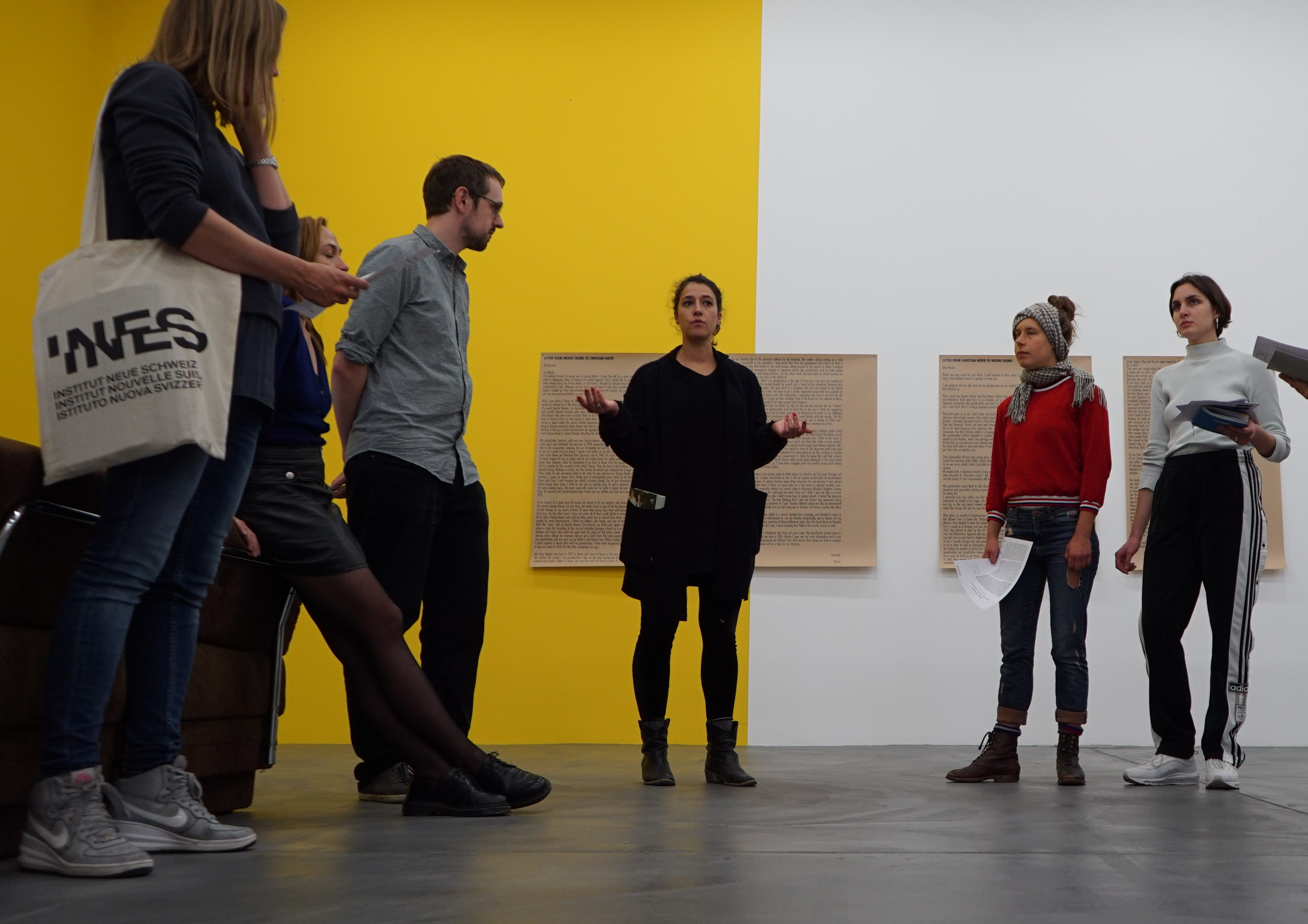 In diesem Rahmen bietet das Kollektiv Neue Dringlichkeit als «künstlerischen Begleitservice» am 08.11. von 17:00 – 20:00 eine diskursive Museumsführung an. Wir führen in das Werk, seine Entstehung und seinen Kontext ein, geben Raum für die Betrachtung der Ausstellung und versammeln uns wieder zur gemeinsamen Besprechung der Arbeit, ihrer Bezüge und der Themen, auf die sie verweist.